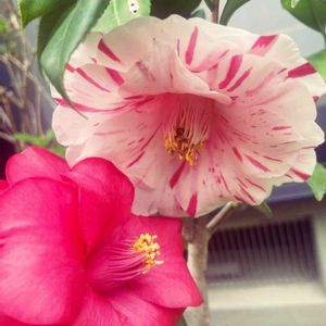近所に源平咲きの桃の花のあるお家があって、いつもながら不思議ー✨って春に眺めてたんですよ。 そしたら、なんと実家にも源平咲きの椿があるやん!さすが母ちゃん、ツボ押さえてるなー👍と、亡き母を思う。 母の日には、私が欲しかったクレマチスの鉢植えをお供えしました🌼ムフフ😁