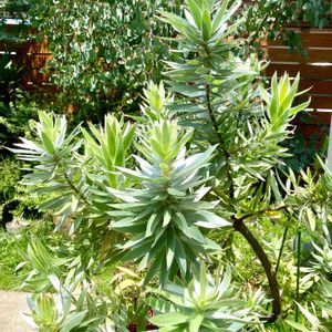Leucadendron. Silver leaf tree. シルバーモリモリ三人衆、2人目(人じゃないけど)リューカデンドロン・シルバーアフリカーナ 日本人がつけた名前でしたっけ? この子も地植えモリモリの一つ