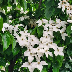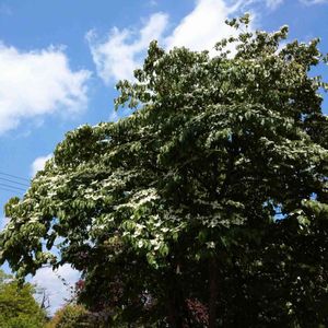 山法師の花💕(常緑山法師ホンコンエンシス) 今年も家の山法師の木がお花を沢山つけてくれました🌸 まだ少し緑色がかったお花なのですが、暑くなってしまったので白くなる前に散ってしまいそうなのでもうupすることに😊💚