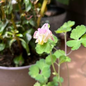 種まきっ子のオダマキです。 いつ種を蒔いたのか忘れちゃいました。 もう一年以上はたつはずだけど 未だにポットに植ってます。 一応水切れしない様に気をつけていると 忘れた頃に☘️が伸び出し 花を数輪咲かせてます。 初めて育てているので 未だにサイクルが掴めずにいます。