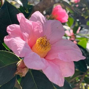 おはようございます。 曇り空の朝 昨年、見切り品の50円で買った 香り椿、古都の香り🌸💕 10個蕾ができ今朝1輪咲きました🎵(≧▽≦)
