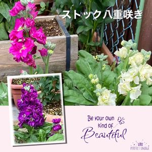 八重咲きストックダブルダブル 花もちがよく切り花やアレンジメントによく用いられます。 八重咲き、一重咲き、スタンダードタイプ、スプレー咲きの品種があります。 ご近所のご主人が花の世話をしておられます。