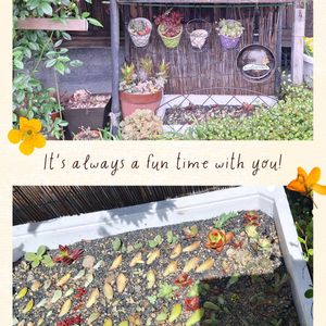おはようございます☀️ さっき 多肉棚をアレンジしてみた💕 ポイポイ箱も見れる場所に 置いてみた。 その上に多肉吊るして そこへ お隣さんが小さなフライパン 要らんから捨てるって言うから そんなフライパンもらって リユース💕 Welcomeって書いて吊るしてみたんです。 古びたフライパンがいい味かな(笑) 自己満足の朝です🎶
