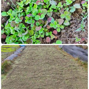 菜の花の種まきに比べて、一面にうまく発芽してきたかも。 ピンクのじゅうたんを夢見て! レンゲ