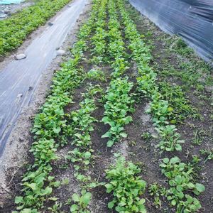 大きくなりましたが、歯抜けな所があります。 原因は近くの黒猫かも。 土を掘っている所を、目撃。 定かではありませんが😁 菜の花