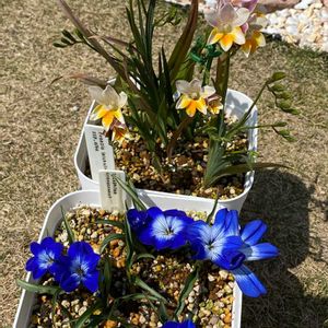 フリージア Freesia leichtlinii ssp. alba テコフィレア シアノクロッカス Tecophilaea cyanocrocus 暖かい日になりました☀️ 今日は南アフリカ球根類の2種🌱 テコフィレアは こちらで写真を見せてもらい これは育ててみたいと思い球根をGET💓 オキザリスにはない濃い青🟦が すごく綺麗😍 原種系フリージアは オキザリスの大先輩さんに譲ってもらった球根から💓 お花の表の鮮やかなイエロー 花裏のあずき色 見たことのないフリージアで こちらも良い〜😍 無事に育ってくれて 綺麗なお花に会えて嬉しいです🥰