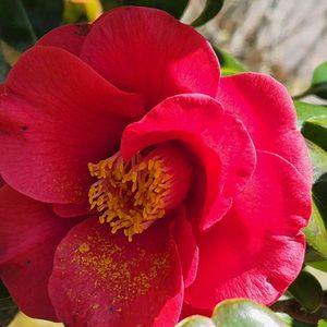 おはようございます 赤い椿 で満開です( ^-^)ノ∠※。.:*:・'°☆