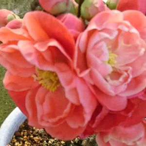 こっちの木瓜はピントがあったよ😆 八重咲きが(●^o^●)