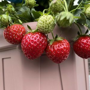 1️⃣イチゴが色付いて、少しずつ収穫しています😊 何鉢か育てているうち、病気が出て処分した株もありました。 なかなか順調とはいきませんが、失敗もひとつの経験です😔 2️⃣今年は🍅トマトの水耕栽培に初挑戦しています。 2月に種を蒔いたものが、着果し始めたところです😉