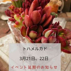 イベント延期のお知らせ 多肉永遠初イベント Tohamerucado 3月21日、22日 の開催日をお楽しみ 頂いておりました皆さま 大変申し訳ありませんが 小さなイベントではございますが イベントの自粛を 決めさせて頂きました。 多肉植物を愛する皆さま、 出店者様皆様がcovit19に 感染しない予防策としまして。 微力ではございますが 延期とさせて下さいませ。 ワークショップにご応募頂いた 皆さま、後日各自詳細の ご連絡をいたします。 * 早い終息を願って。 皆さまと笑顔でお会い出来る日を 願って。 * #多肉永遠 #たにくとは #多肉植物サボテン#太田市盛り上げましょ #群馬県多肉植物#群馬県イベント #太田市多肉植物#太田市ワークショップ #succulentlover#cuctus #succulents#suclentus #tanikutoha #多肉女子#多肉植物好きな人と繋がりたい #다육식물선인장# #トハメルカド必ずお会いしましょう #イベント中止#イベント自粛
