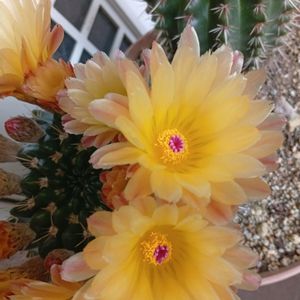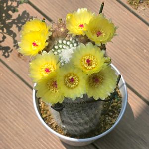 我が家のダイソーナンバーズ。 ノトカクタス(現パロディア属)咲きました。 植え替えから間がないせいか、満開を待っていたら閉じかけてきちゃったので、慌ててパシャりました。 お日様の光の下で撮りたかったぁ。