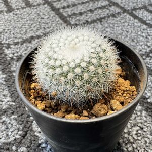 スーパーで先月入荷されて以来、 全然売れた気配のない サボテンのトレーから ひとつだけレスキューしてきました🌵 白小町です。 白い渦巻き🌀可愛い