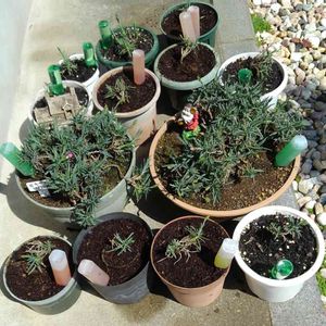 もともと1鉢だったセキチク まず、株分けで2鉢にして、花の時期が過ぎた頃に、剪定し、このときに剪定されたもののいくつかを挿し木にして繁殖中 セキチクの親子💕😍