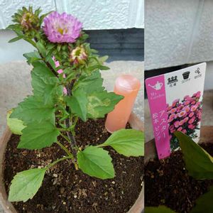 これも先日紹介した3鉢のアスターのうち、「松本ピンク」の花が咲きかけています😉