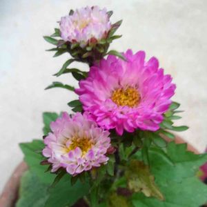 アスター 松本ピンク 花が3つ咲き始めました😃ピンクの濃さがこれから揃うのかな…❓
