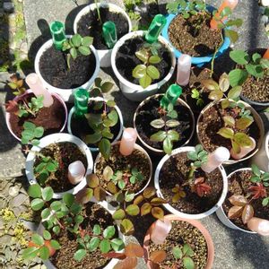 ついでに、薔薇の挿し木たちも…数えてみると、親木まで合わせて、37鉢(うち親木は3鉢)😱 ちょっと増やし過ぎ……🤔どうしよう…?😓 庭が広ければ、バラ園みたいにできるかもしれないが、家はちょっと無理かな😅