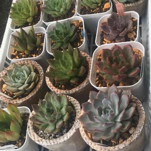 植え替え中です!いつもは、赤玉のみだったけど今回は、赤玉に鹿沼の中と小とバーミキューライトを混ぜ込みました😊❗️ それにしても右下のラウリンゼ×sp ノバ一年たたずに二号から三号に😁ラウリンゼ入ってるのは成長早いですね😚❗️