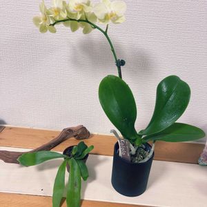 1月過ぎにホムセンで買ったミディ胡蝶蘭カララ 2000円のものが200円になっていたので、蘭には手を出すまいと思っていたけど、ついに😊 でもやはり200円もの… なんだか調子が悪そう…。 ミニビニールポットに穴も空いてないし…花もすぐに終わったし…。 なので1月25日、北陸で2週間も晴れが続いた記録的な晴れの日に、 我慢できずに、鉢と土替え。 根っこがかなり黒ずんでたり、死滅してたりで、ハサミで切り蘭用の土に入れ替え。2枚目 しばらく3枚目状態が1ヶ月。 家を留守にしてた時があり、暖房を切った状態が続いた日もあってか、葉っぱ1枚がシナシナに! 砂糖水を浸したキッチンペーパーで一晩包んであげたらよいとyoutubeで見てやってみたり…でもシナシナ… そしたら😊しばらくしたら 4枚目のように、新しい葉っぱが🌱😆 来冬、開花してほしいな😊