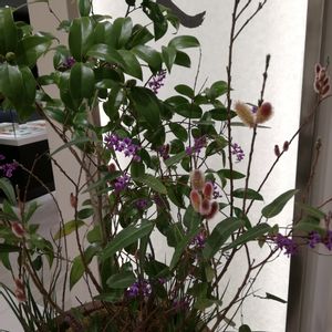 ネコヤナギ🌿 コマチフジ🌷 つばき💗 デパートの寄植え🍀 いいですね💞