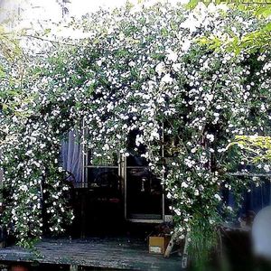 ☔️降る前の昨日 今年は虫 病気にも負けずに 咲いてくれたよ〜 右に左に枝を伸ばして5メートルにもなりました🤍 風に乗ってほんのり優しい香り がするよ🫧🫧🫧🫧🫧