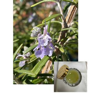 「ローズマリー軟膏」作り ベランダ栽培しているローズマリーが生い茂ってきたので、剪定も兼ねて5月上旬に収穫しました。 大量に葉があるので前から作りたかったローズマリー軟膏に挑戦。 まずはチンキ作りで、エタノールへ葉を漬けて約3週間…。 はじめてでしたが、何とか軟膏完成しました! ローズマリーから抽出した成分(ウルソール酸)がシミ・シワに効くそうです。 今夜から使ってみます。 楽しみ~😊