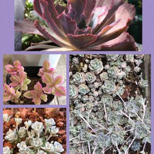 多肉植物色々綺麗‼︎ お気に入り💗🎶 ⬆️ シャビアナネオンブレーカー⁈が青くなったり赤くなったり ➡️子持ち蓮華が元気にギュウギュウ❣️このままだとどうなるんだっけ🤔 ⬅️名前何だっけ⁇ 先日も霜が降りた位だから未だピンク😳 ↙️ 白雪ミセバヤ⁈ 親は消えたけど、バラ鉢に載せただけのチビちゃんが元気に増殖中💓💓 植え替えしなくっちゃ…まだまだこれからです。