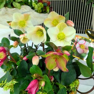こんばんは😃🌃 今日はいつものお花屋さんVERY VERYに行ってうちに居るクリスマスローズが花芽かなと思えるのは出てきてるけど、なかなか成長しなくてしびれを切らして開花株をお迎えしちゃいました😅 童仙房のゴールドコレクションです🥰