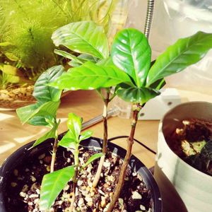 コーヒーの木🌱 欲しかったコーヒーの木をネットでお迎えしました🌱✨葉っぱツヤツヤですヽ(=´▽`=)ノ💚成長がたのしみです(^^)🎶