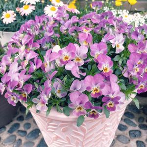 リナリアと種まきビオラ2種類とフィオリーナの挿し芽から開花した花の寄せ植えpicです❁❀✿✾ 薄紫の花がフィオリーナです。親株より色は薄目だけど可憐です(*ˊ˘ˋ*)。♪:*°