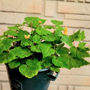球根ベゴニア ササーランディ🧡 昨年出来た沢山のムカゴを、球根と同じ鉢に植えたからぎゅうぎゅうです。 私もベゴニアンね(^^)v🐐