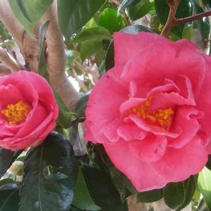 寒風の中、庭の椿が咲きました。 親子並んでいるね。 今日は日差しはあっても風が冷たい一日でした。 2/18 14時25分撮影