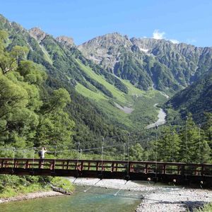 一週間近くの豪雨の後やっと日差しが戻りつつあります。 二週間前には晴天のもと梓川から焼岳を望みました。