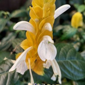 パキスタキス 茎の先に色鮮やかな黄色の苞を 付け間から白い花を咲かせ… 見ていてもユニークな花です…