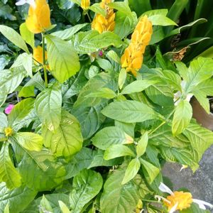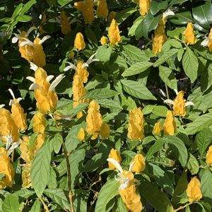 親戚の庭に咲いている パキスタキス 可愛い花ですね〜🌿💛 キツネノマゴ科 パキスタキス属 和名:ウコンサンゴバナ ペルー原産