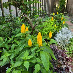 今日のお庭 🌺このコ、昨年も黄色にピンクが混じったお花を咲かせてました😅 かわいいから許す😍 ガーデンブーゲンビレア色がハッキリしてきました😄 お花はまだツボミです😊 パキスタキス開花しました😄 2年目のスピードリオン咲き始めました💟