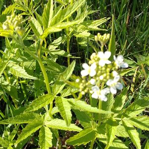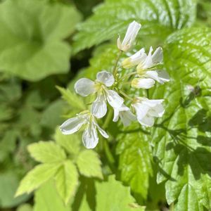 コンロンソウ(崑崙草) *アブラナ科タネツケバナ属 花期は4〜7月 北海道〜九州の山地の湿った場所や川沿いの湿地などに生える。 茎は高さ25〜70cmほどになります。 葉は互生し奇数羽状複葉で5〜7個の小葉! 和名は中国の崑崙山に白い雪が降り積もっている様子に由来するそうです! 葉の様子と白い花は なんとも涼しげです! 宮城県登米市 興福寺