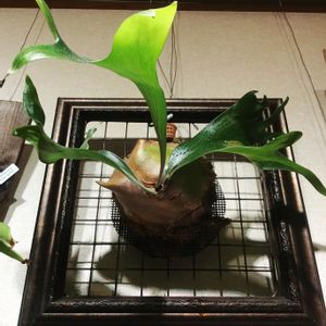 今週初めくらいには我が家にやってきてましたが板漬けとかできてなかったので ヒリー バーサーカーです。 名前がかっこいいそれだけで買いました。 大型のヒリーなので育てるのが楽しみですね😊 冬に備えて置いても吊るしてもいいようにもともと違うビカクシダの入ってた容器に入れました。 とりあえず頑張って冬を越そう まだ秋だけど