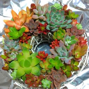 2020.12.25📦️ 多肉のリース🛃着弾 ふるさと納税で貰った多肉リース (福岡県) 🙎♂️オットット💢えっ多肉!じゃなくて肉🥩🥓じゃないの!?牛肉とか魚介とか…😩食べる…ブツブツ… あらら!機嫌悪くなってる😝やだわァ ぎゅぎゅっと詰まったリース🎀何処飾ろう♪夫の目に付にくい所