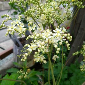 ロクベンシモツケも 咲き始めました¨̮♡︎¨̮♡︎ 蕾が重過ぎのせいか 開花前は‥項垂れてます🤣