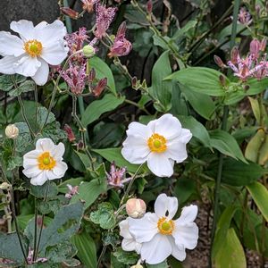 シュウメイギクの花言葉∶「薄れゆく愛情」「あせていく愛」「淡い思い」「忍耐」 キンポウゲ科イチリンソウ属🌿 別名∶貴船菊 英名∶ジャパニーズ•アネモネ 菊ではなく、アネモネの仲間。
