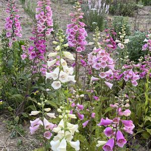 花畑の様子 ジギタリス、矢車草、クナウティア、パンジー🌸