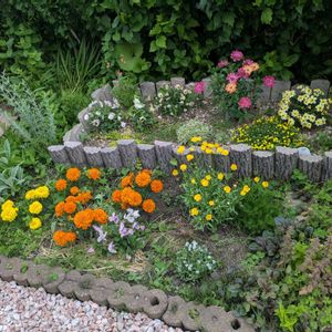 こんばんは╰(*´︶`*)╯♡ 2枚目です♡ ローダンセマム アプリコットジャム🌸 咲き進むと白っぽくなりますが咲き始めと色ミックスになって可愛いです😍 以前投稿したプリマリアさんとそっくり、こちらは普通のローダンセマムのサイズです😁 ④プリマリアとアプリコットジャム、サイズの違いわかりやすい様に並べてみました💕 ⑤数週間前の写真です😊 鉢植えローダンセマムが花壇の外側に並んでます🌸