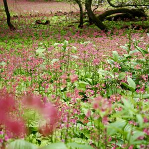 クリンソウ(九輪草) みどりのまとめ ゆるり散策から 園内の小川に沿って咲いていた。 近くまでは行けなかったが、水辺のクリンソウは涼しげ🌿🩵💕🤍 2025.5.20