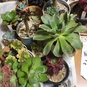 室内避難記念😁 明日の朝が冷えるとの事で寒さに弱そうなアエオさんたちを今収容してきました。 ちょっとサンシモンの葉がしんなりしてて、危なかったかも💦💦