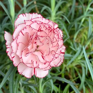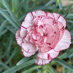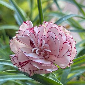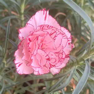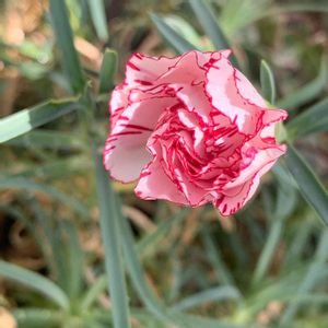 テラスのカーネーション♡ 春よりひと回り小さいお花が一輪だけ咲きました(╹◡╹) 縁取りが可愛い💕