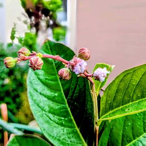 オオバナサルスベリ。 初めてお花が咲きました\(^o^)/ マレーシアに行った時に印象に残ったお花です。 現地では見事に咲いていて感動しました。 帰宅してから調べたら、種と苗が販売している事を知り、どちらも購入してみました。 種から育てた方は、昨年の冬に室内に取り込むのが遅くなり枯らしてしまいましたが、苗木の方も小さかったですが5年程育てたら今年やっとお花が咲いてくれました。 待ちわびたお花です。 花の大きさはまだ5〜6 ㌢位でしょうか。 サルスベリの中で1番大きな花が咲く品種です。 葉の方はバナバ茶として飲まれているそうです。 寒さに弱いので、沖縄辺りなら地植えが出来ますが、愛知の冬は室内管理になります。