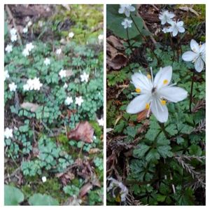 ニリンソウといえば、牛奥ノ雁ヶ腹摺山(うしおくのがんがはらすりやま、日本一長い名前の山らしい。1,995m)の山腹で見ました。5月でも霜柱。厳しい環境のせいか、となりのモミだかツガだかの芽生えより小さくて下界のニリンソウとは全く違う植物に見えました、、なぜなら、これはバイカオウレンだから😆🤣勘違いしていたようです。