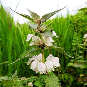 踊子草(オドリコソウ) シソ科オドリコソウ属の多年草。林の中や道端などの半日陰に群生する。茎は直立して四角く、卵形の葉が対生する。花期は3~6月。茎の上部の葉腋に長さ約3㎝唇形花がぐるっと輪になってつく。上唇はかぶと状、下唇は3裂する。花色は白かピンク。東日本では白が多く、西日本ではピンクが多いとも。花の底には蜜があるので蜂がよく訪れる。果実は分果で宿存萼の中に4個できる。種子にはエライオソームがついていてアリが運ぶ。 名前は、花の形を笠をかぶった踊り子に見立ててつけられた。 出典『四季の野の花図鑑』『里山の植物ハンドブック』