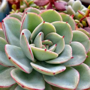お花が華やかに咲いてくれる時期なので お花postが多めですが 多肉も魅力ムンムン(*´∇︎`*)うふ♪︎.*:・'゚. 多肉棚を覗くと、まぁ〜可愛らしい💞 色白でプクッとしたフィルムのバークレー錦✨✨ エッジがいつの間にかフリフリピンク になってきました〜( ⸝⸝⸝•_•⸝⸝⸝ )♡︎♡︎