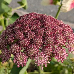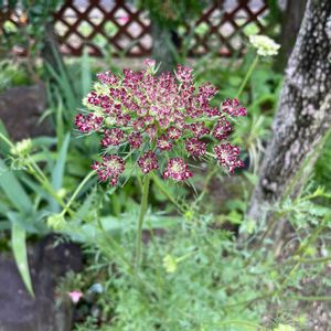 公園の花壇で咲いていた白い花。 園芸品種だと気にもとめていなかったのですが、③④の姿を見て、ノラニンジンだ‼️と興味が沸きました😅 AIがブラックレースフラワーだと教えてくれました。 真ん中に紫色の物があるのがホワイトレースフラワーとの違いだそうです。 で、北海道でよく見たノラニンジンと同じものだそうですがホントかいな😵💫 詳しい方、教えて頂けると嬉しいです❣️